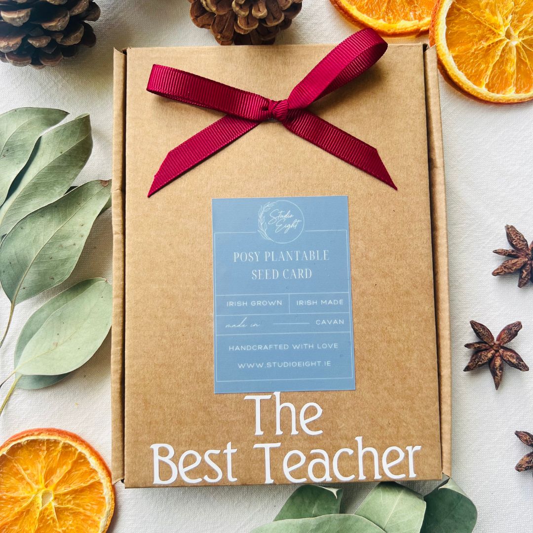 The card itself is made from plantable wild seeds and can be planted to grow beautiful wild flowers and grasses. Instructions are included in the gift box.