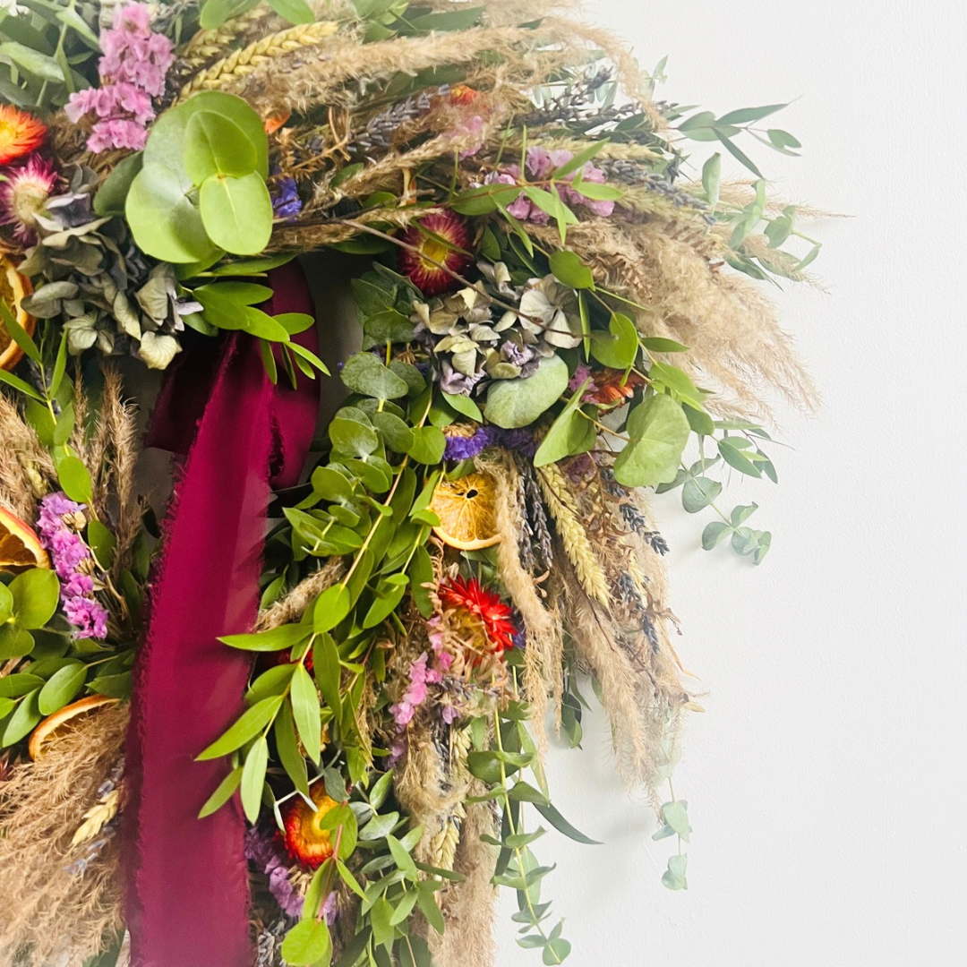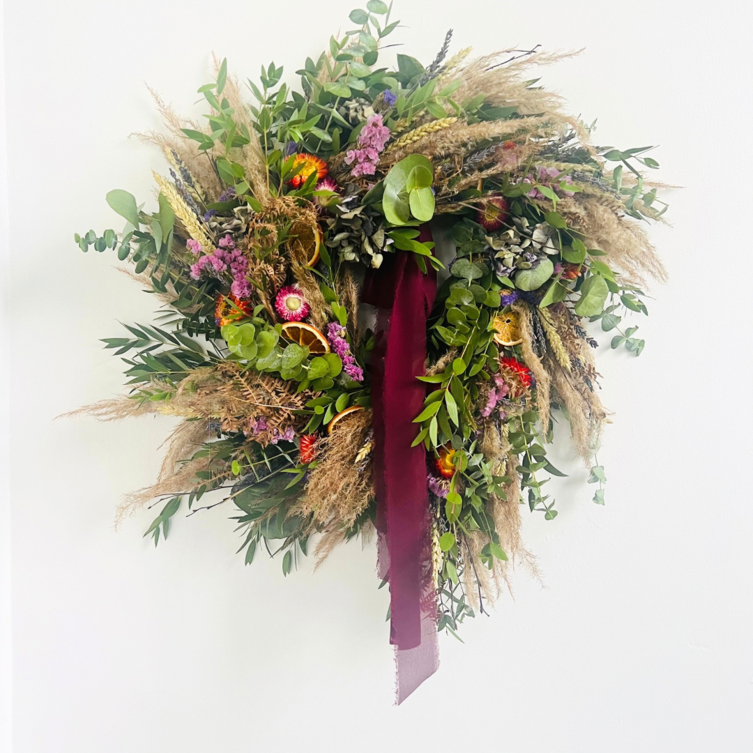 This beautiful wild and full rustic fresh & dried statement wreath is perfect for any interior with natural or rustic vibes.